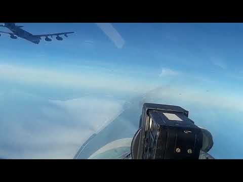 Imaginile sunt filmate dintr-un avion de luptă Su-27 care escortează bombardierul după interceptare. Escortarea ar fi avut loc deasupra Mării Baltice.